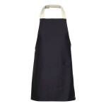 Bib apron with adjustable halter self fabric strap around neck Unique styling Towel loop at back of apron 1 Large central front pocket with special side slide pen and bottle opener provision Free size 97cm x 86cm |